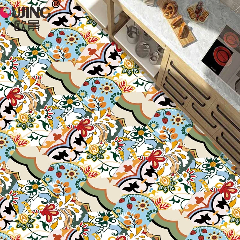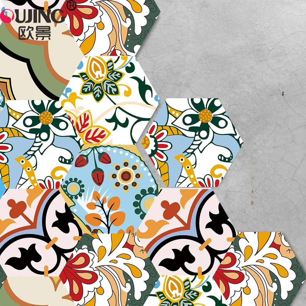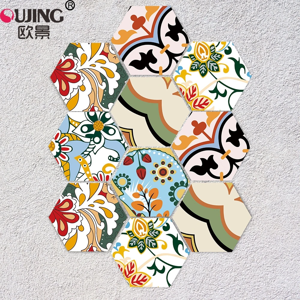 Best Quality Colorful Flowers Pattern Hexagon Twill Tiles Floor Wall Sticker Living Room Bathroom Non-slip Mat W