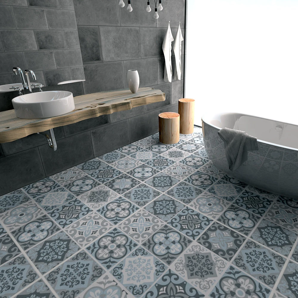 Best Quality Funlife Blue&Grey Mediterranean Geometry Removable Anti-Slip Floor Stickers Wall Art Decal Home Kit