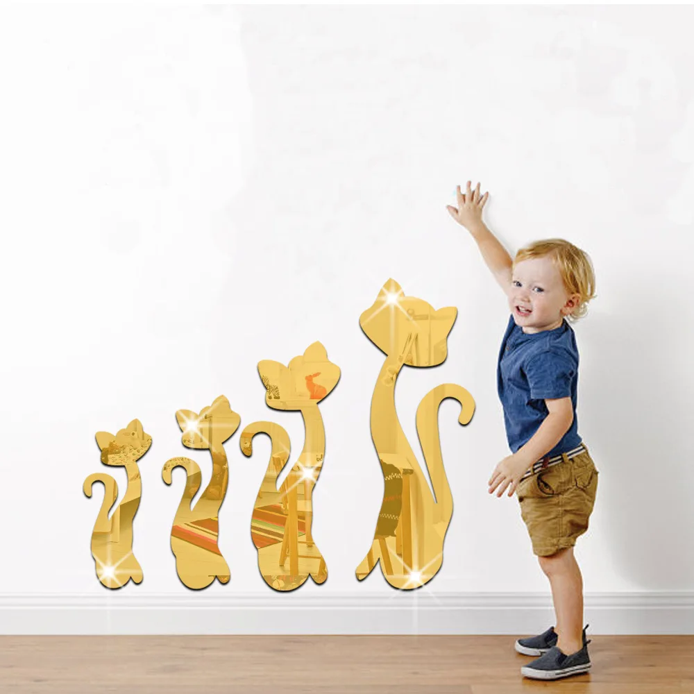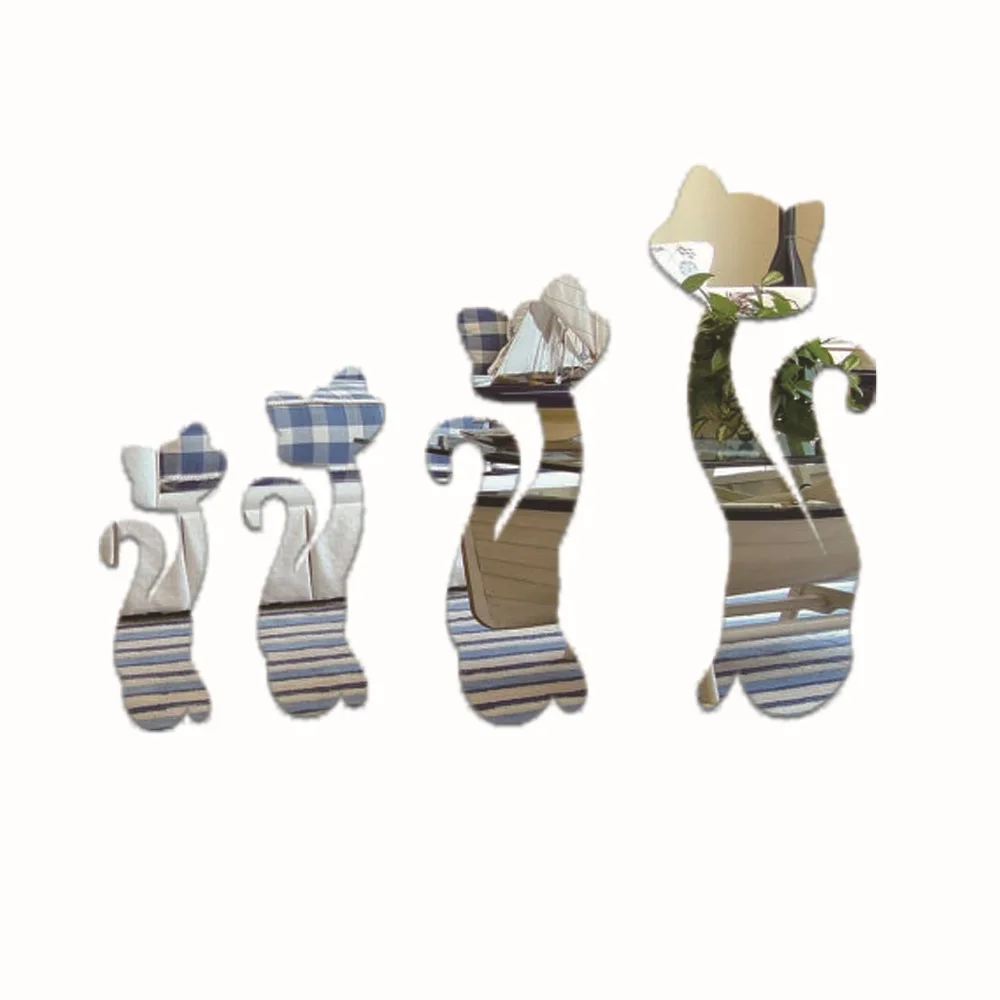 HIGH QUALITY Funlife creative green 3D crystal three-dimensional mirror wall stickers 4 cat can remove the mirro