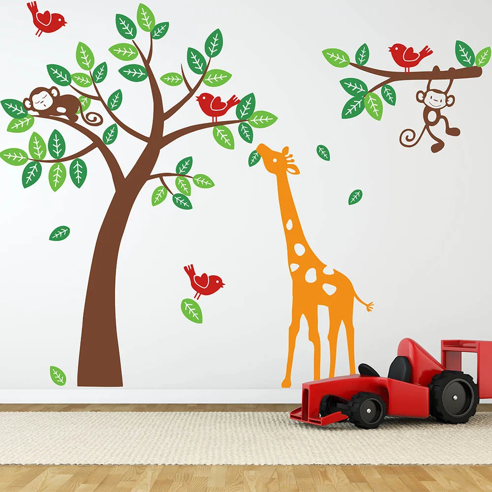 Hot Sale Monkey Giraffe and Birds Tree Decal for Nursery Monkey Giraffe and Birds Tree Wall Sticker 924T