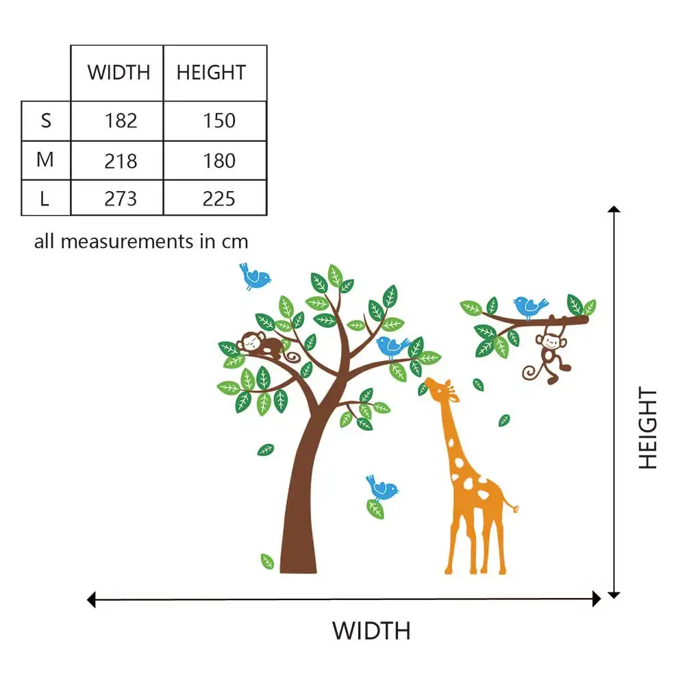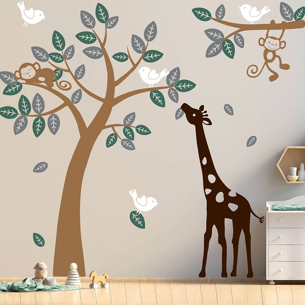 HOT SALE Monkey Giraffe and Birds Tree Decal for Nursery Monkey Giraffe and Birds Tree Wall Sticker 924T