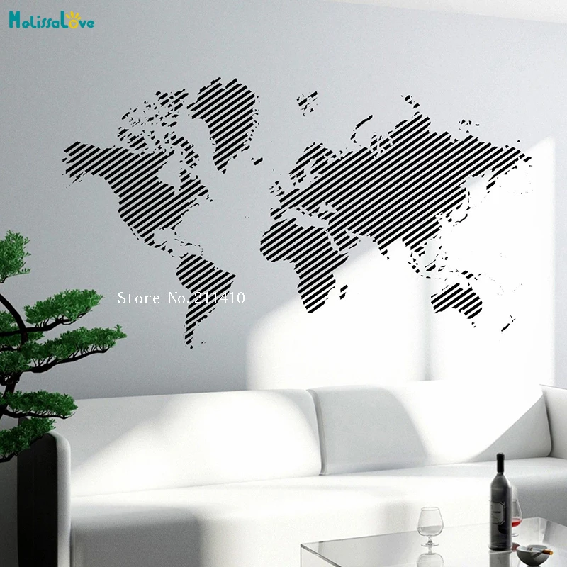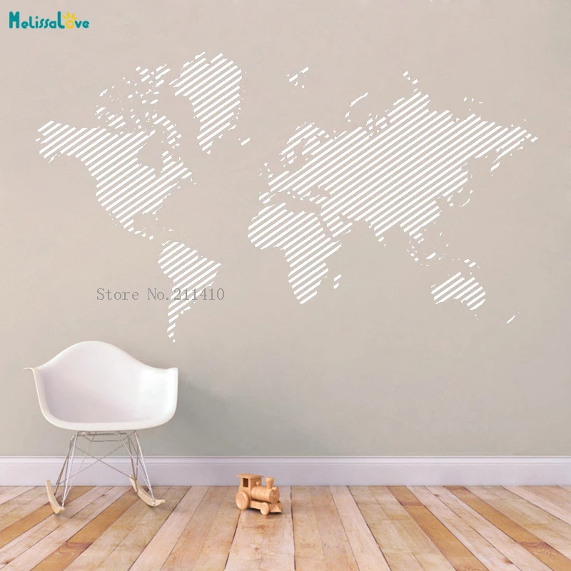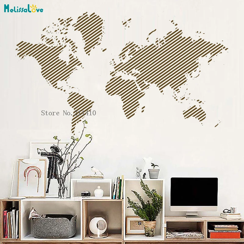 Vinyl World Map Wall Sticker Atlas Travel Slash Shape Simple Decals Home Deocration Living Room Rem