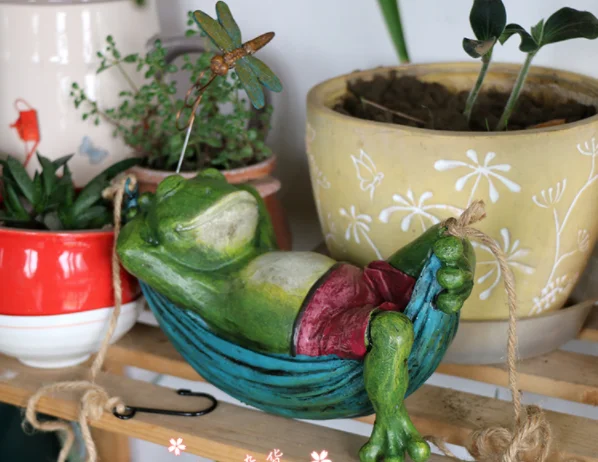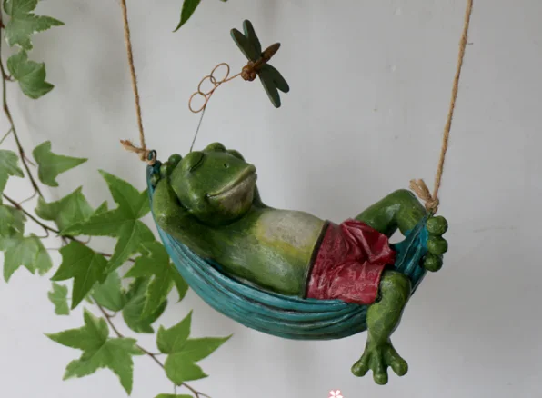 The frog dreamed of a nap in a hammock. Resin wall decoration Garden garden decoration pendant