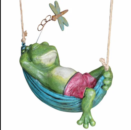 Best The frog dreamed of a nap in a hammock. Resin wall decoration Garden garden decoration pendant
