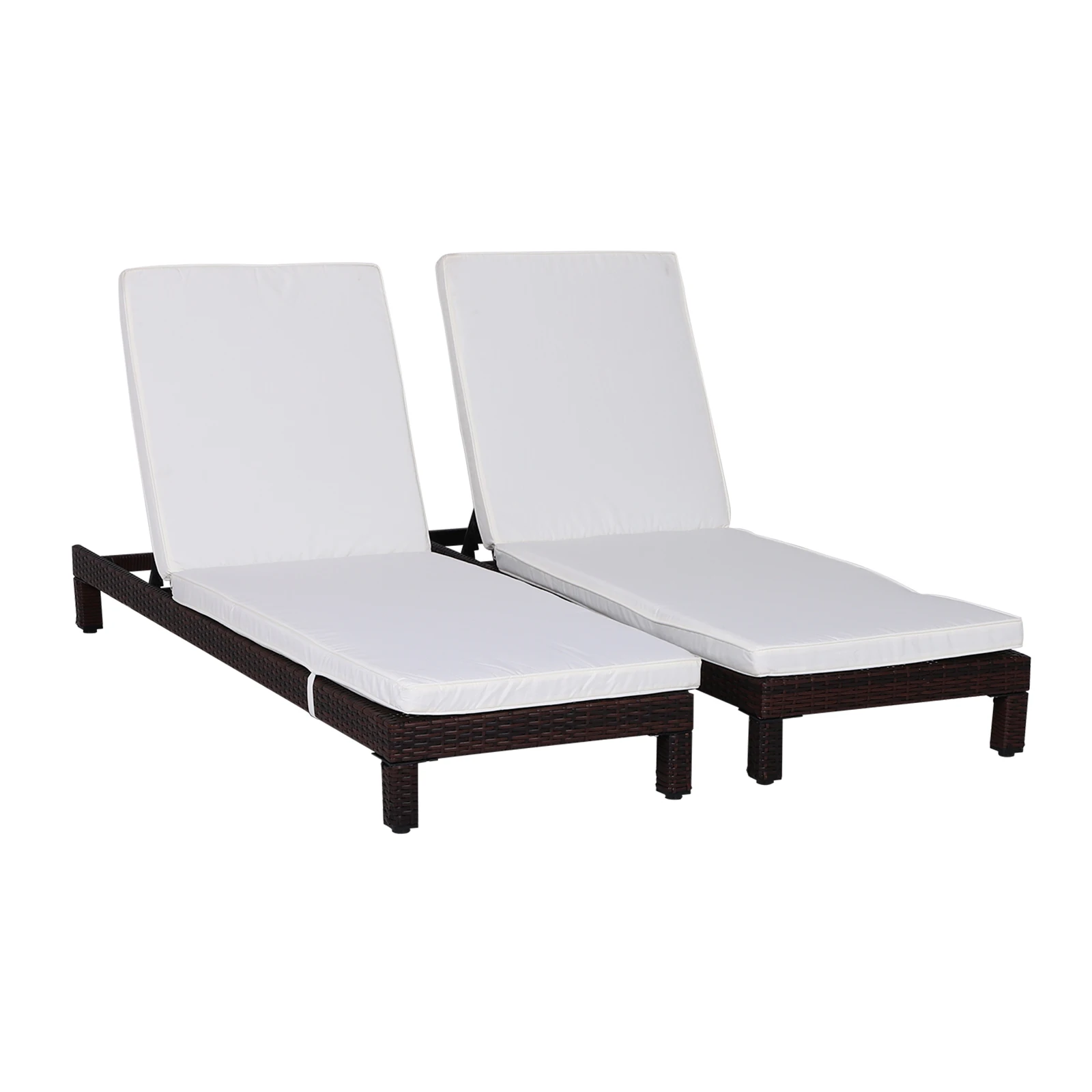 Outsunny Set 2 Lounger rattan garden Adjustable Cushion Padded on 6 Layers 196x65x22 cm white