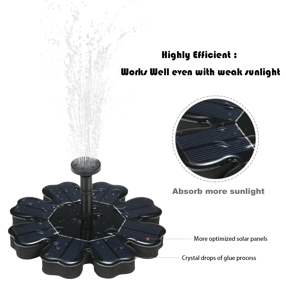 Hot New 8V 1.6W Brushless Water Fountain Floating Solar Fountain Garden Water Pump Bird Bath Pond G